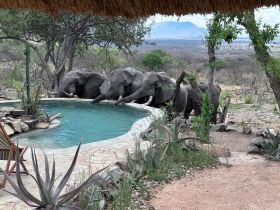 So we are currently welcoming Elephant, Warthog, Impala, Klipspringer and Baboon, daily.. with occasional visits from Greater and Lesser Kudu, Leopard, Zebra and Buffalo.